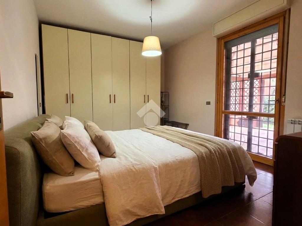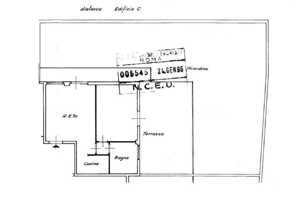 In contesto residenziale caratterizzato da palazzine edificate negli anni ’90, nelle immediate vicinanze di fermate autobus, parco pubblico e stazione FR3 di Olgiata, proponiamo la vendita di un appartamento bilocale posto al piano terra con giardino.
