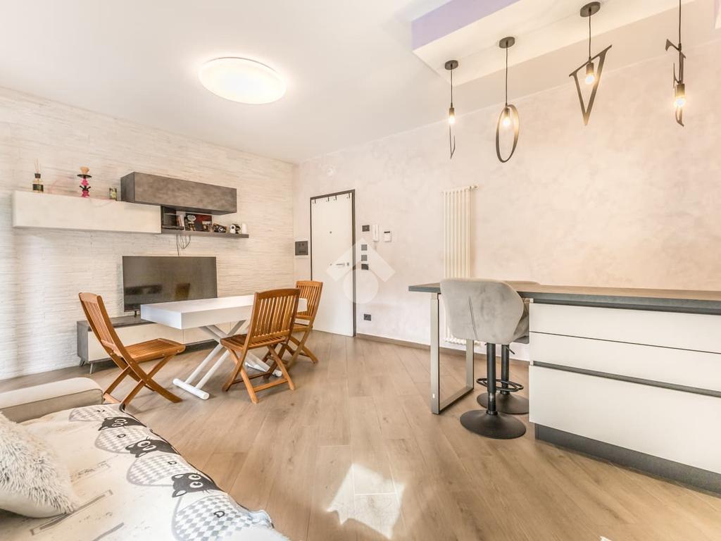 L’ingresso si apre su una pratica zona giorno open space con angolo cottura, estremamente luminosa grazie all’esposizione a sud dell’intera abitazione.
